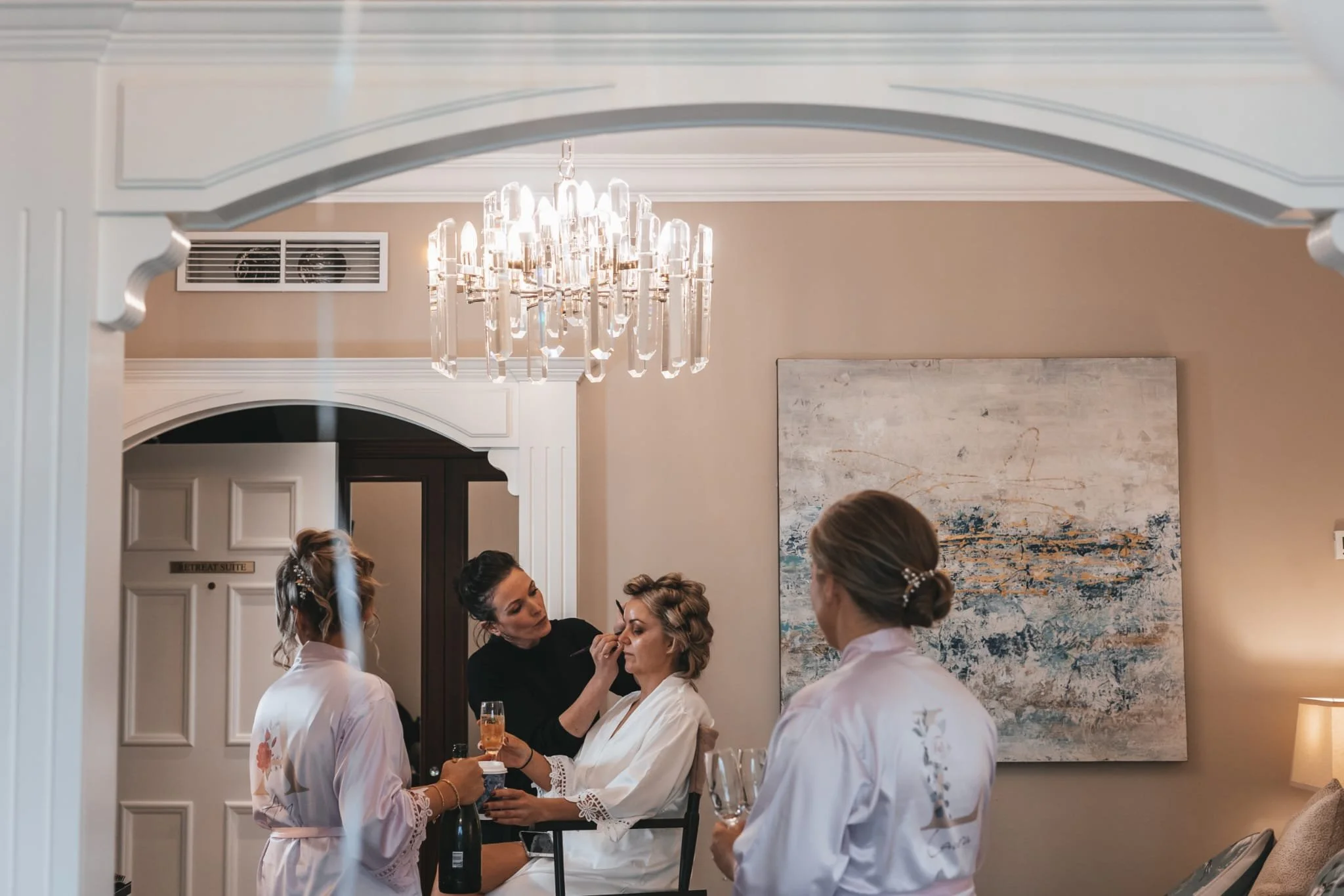The wedding morning should feel like a celebration, not a countdown clock. I’ll arrive on time to set up my kit and help create a calm, happy space where you and your bridal squad can relax, and enjoy every moment! we work to a non regimental schedule. I am with you from early morning until the final finishing touches before you walk down the aisle. Depending on the size of your bridal party and ceremony time your prep could take anywhere from four to seven hours. If I have all info at the enquiry stage I can give a rough idea of what the morning timings might look like.